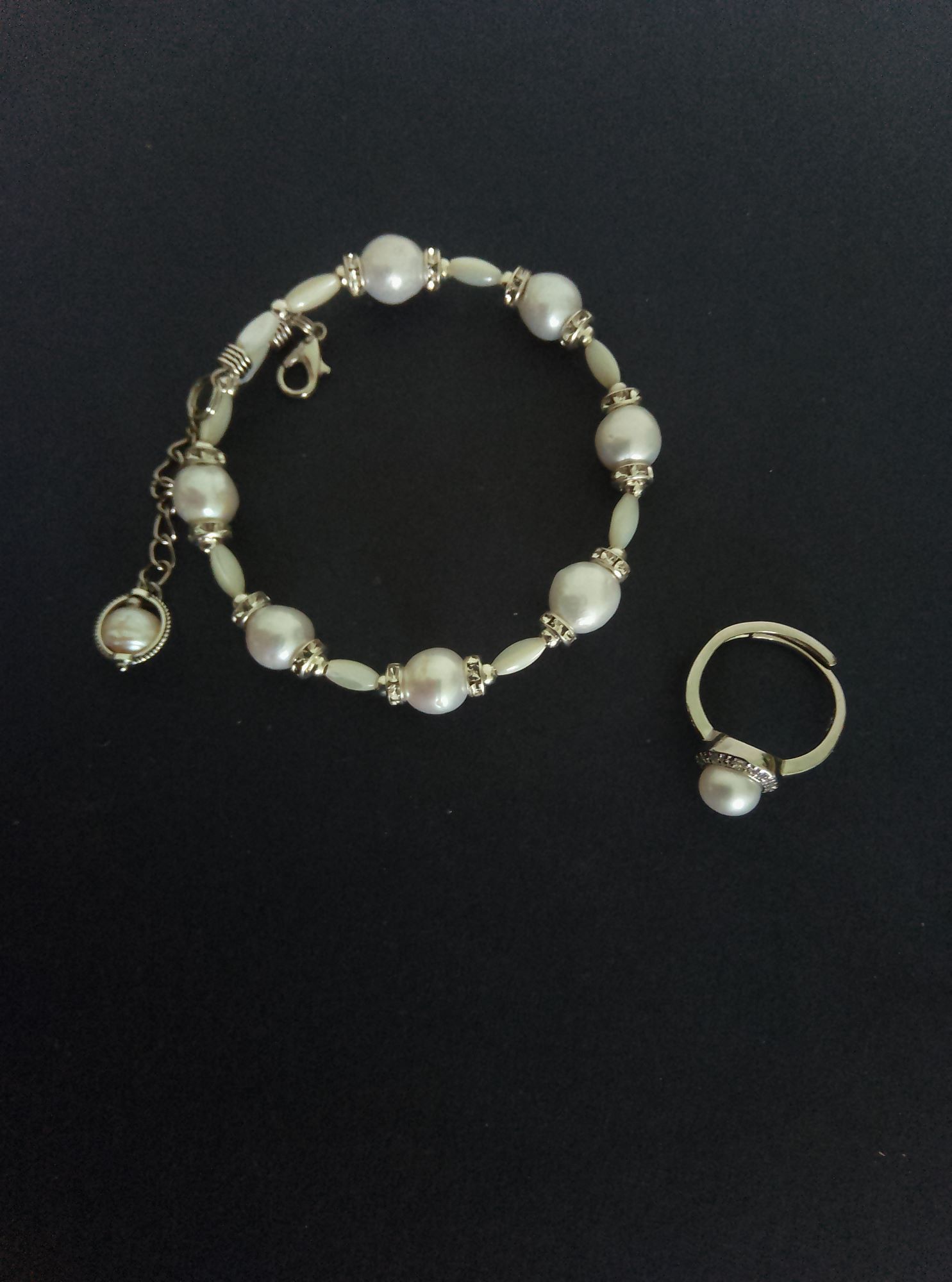 Комплект включает в себя чокер с кулоном 35х15 мм и браслет с удлинителем на мемори-проволоке, серьги пусеты диаметр 12 мм, кольцо регулируемого размера жемчужина в оправе 12 мм. Материалы – жемчуг диаметром 10, 9 и 8 мм, серебро (Китай), сплав ювелирный.
